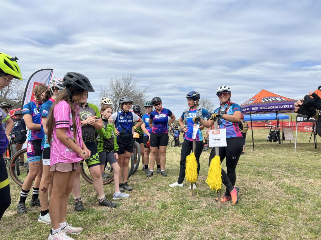 Saturdays are for fun, GRiT, and special guests. The highlight of the Saturday of Rocky Ruckus Ramble Race was a visit by multi-discipline cycling pros and national champions, Lauren Stephens and her teammate Catherine Moore. Lauren and Catherine pre-rode with our student-athletes and stopped to share some words of wisdom with the next generation of female cyclists at our GRiT tent.